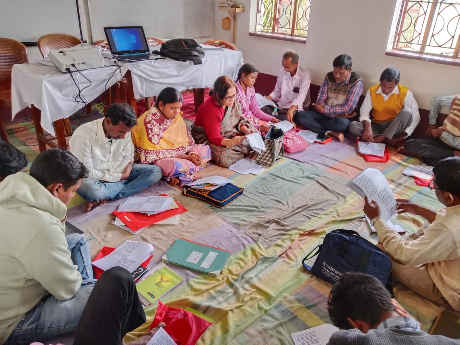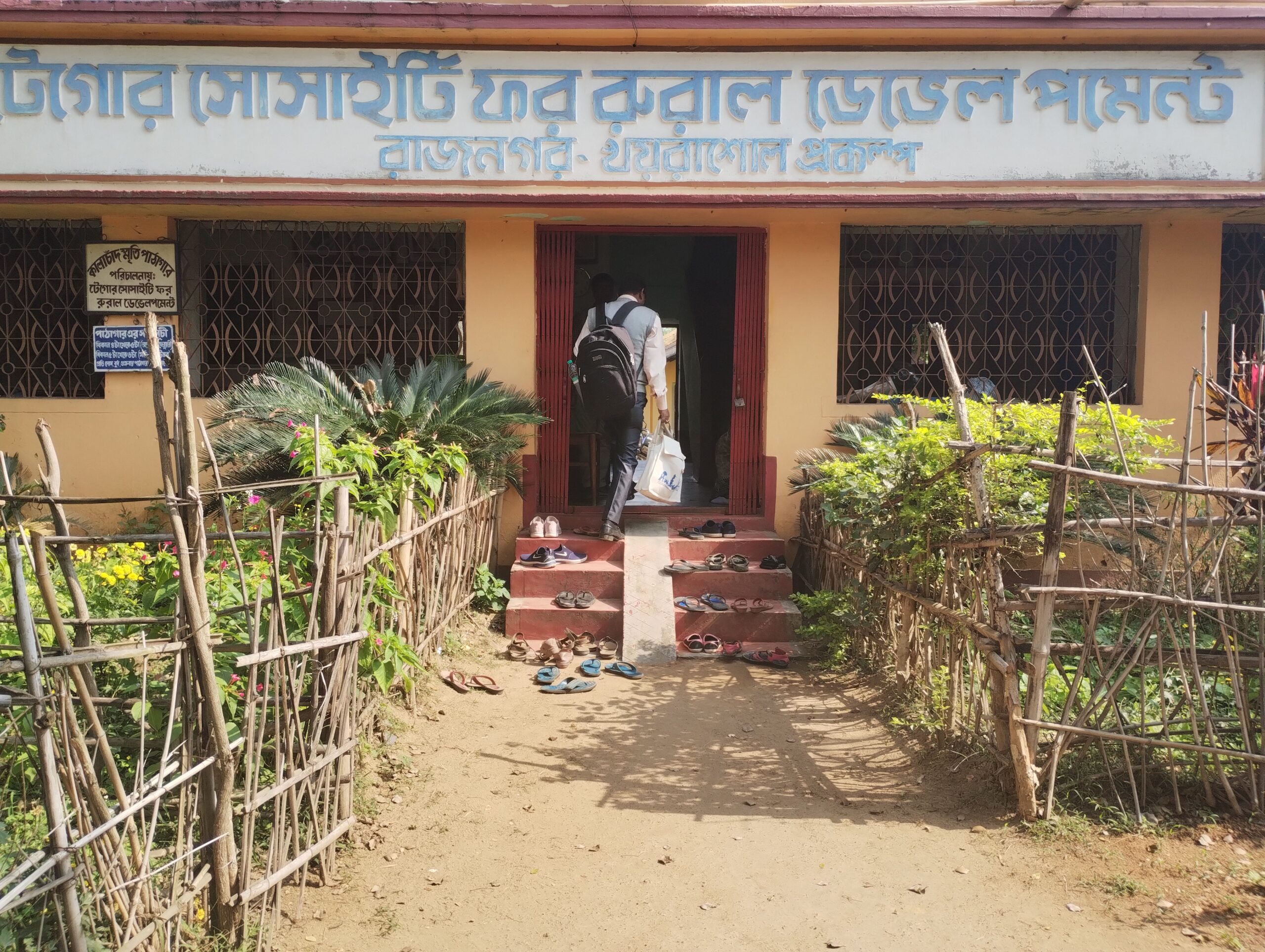 We are most grateful to Pradyut Ghosh for bringing all the somewhat complicated logistics together. The team travelled to Bolpur by train on 16 February and from there to the Bakreswar Thermal Power Plant (BTPP) guest house by car. On 17 February morning, the team travelled to Abadnagar (Birbhum District) by car for the program. The venue was the office of the Tagore Society for Rural Development.