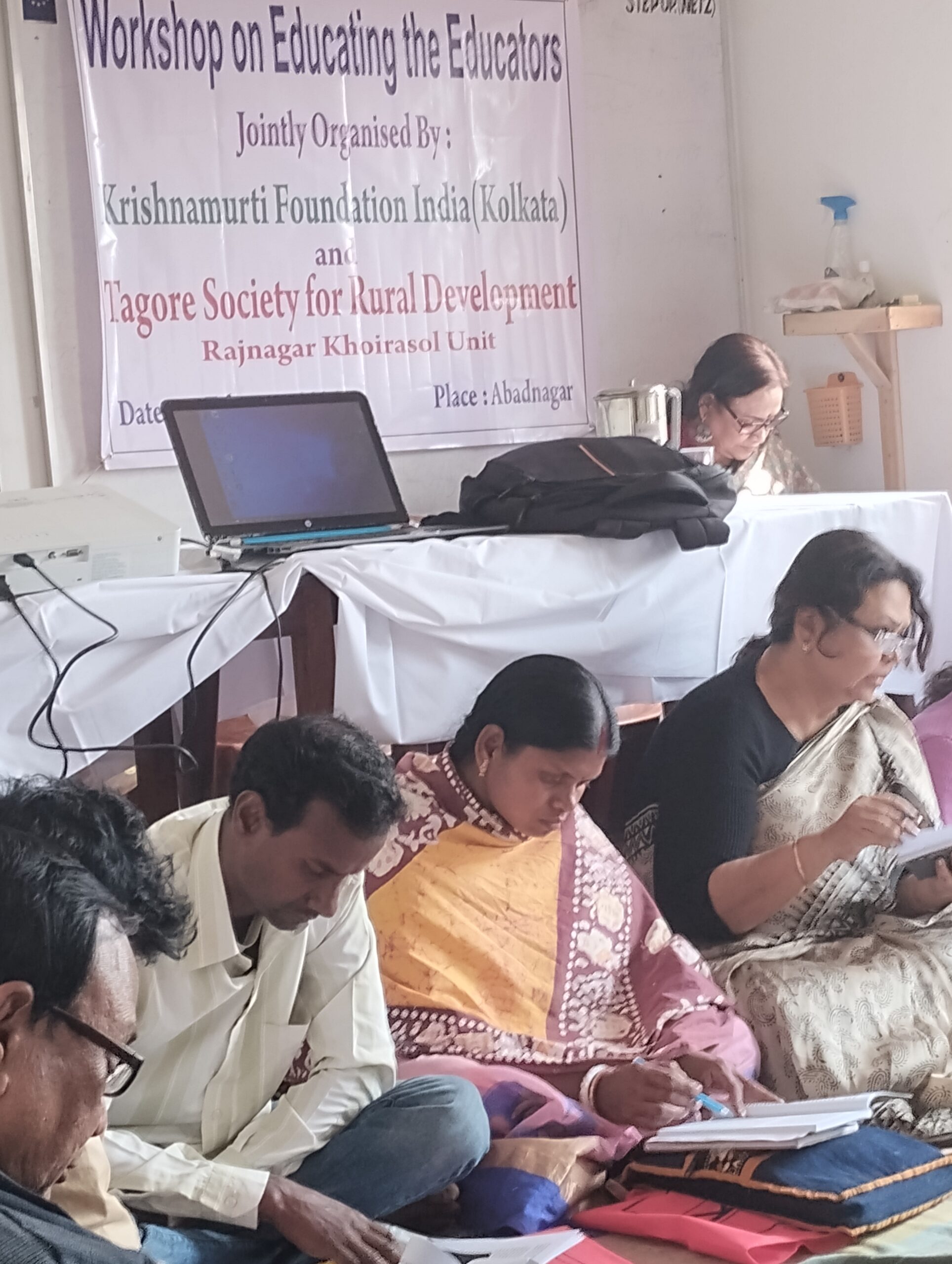 When our Centre friend, Pradyut Ghosh, proposed yet another interaction with teachers in a rural area, we were delighted. The proposal had been discussed with Chandrakanta Dutta of the Tagore Society for Rural Development, Abadnagar in Birbhum district. He was very keen to have an interaction on Education and in particular on J Krishnamurti’s vision for right education.